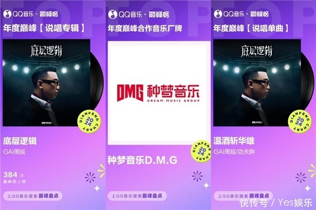 1月7日,QQ音乐巅峰榜2024年度榜单公布,种梦音乐D.M.G