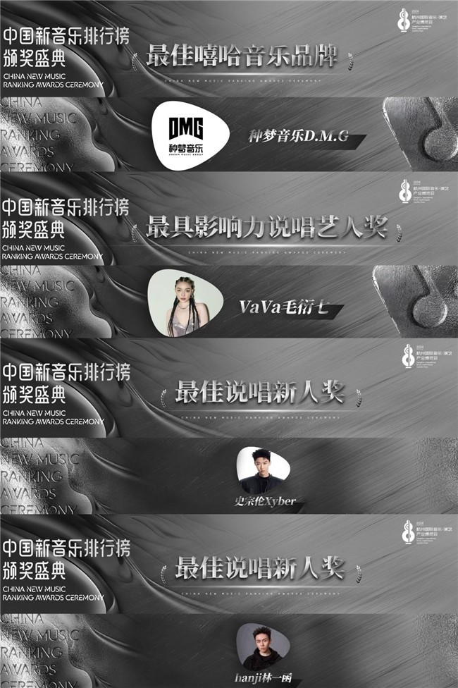 2024年11月28日,MUSIC P.I.E-2024杭州国际音乐·演艺产业博览会,种梦音乐D.M.G获“最佳嘻哈音乐品牌”奖。VaVa毛衍七获“最具影响力说唱艺人奖”,史宗伦Xyber、hanji林一函获“最佳说唱新人奖”。
